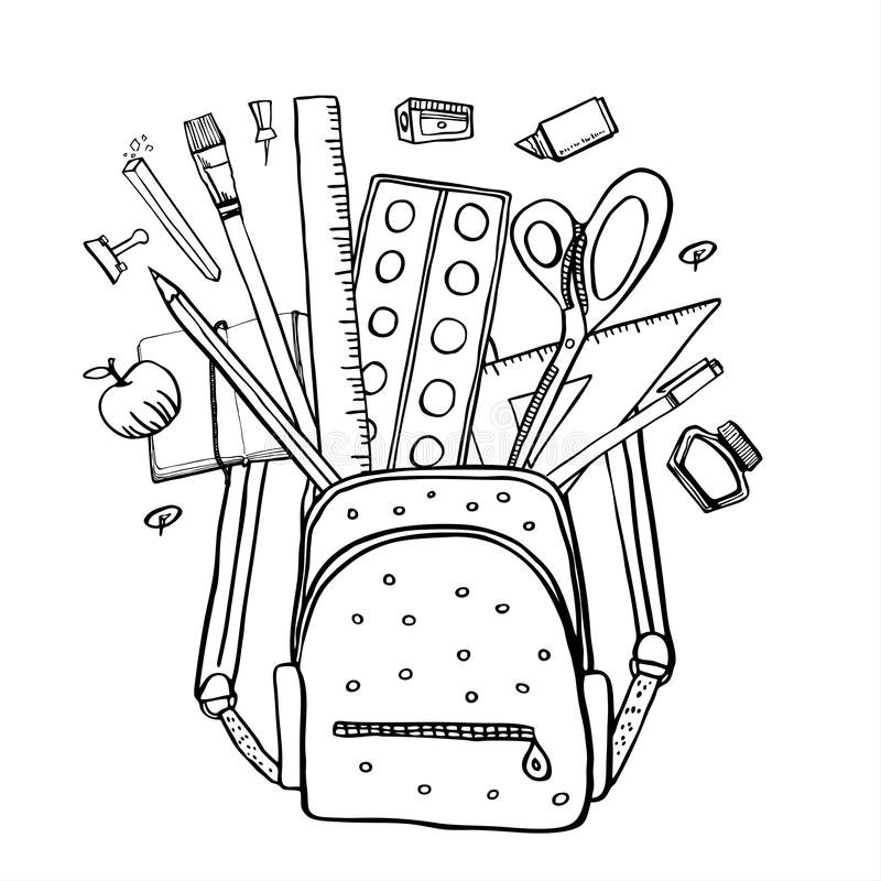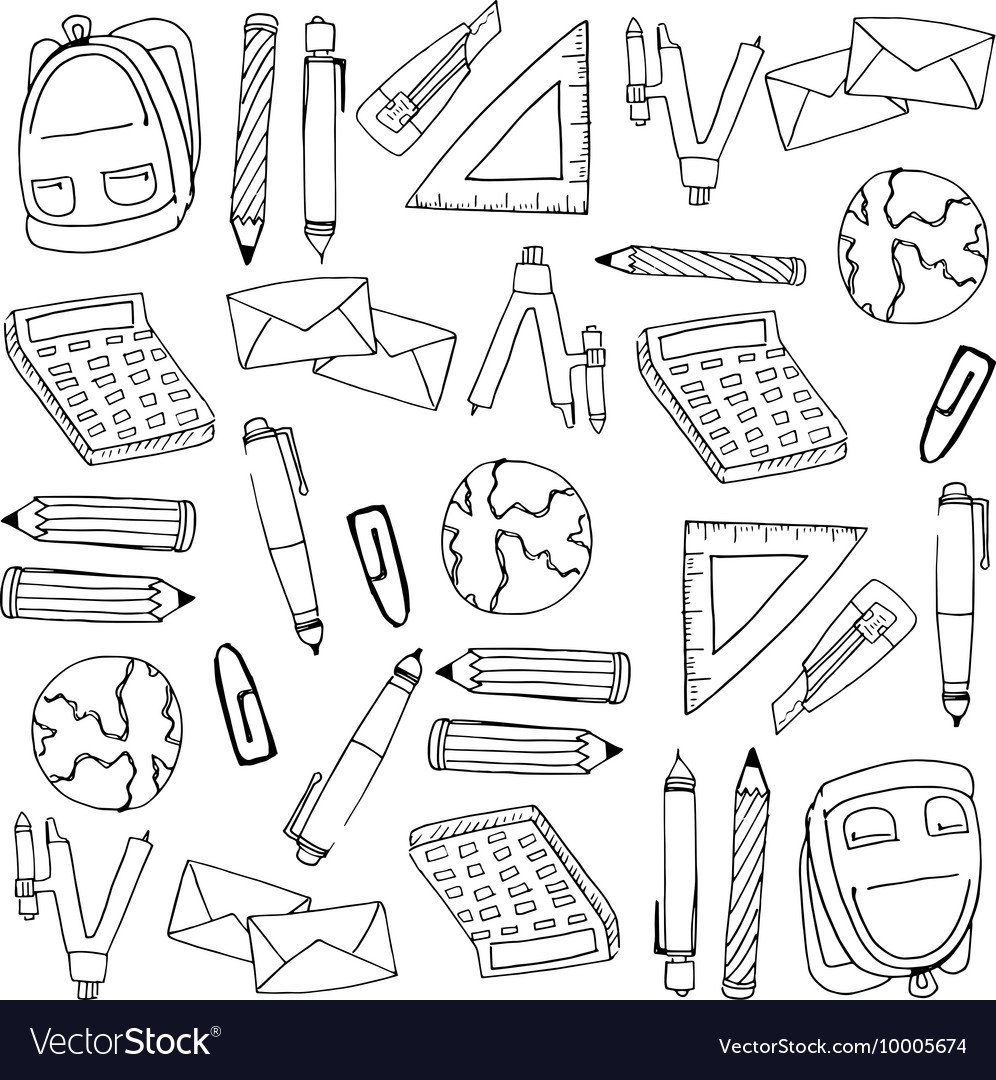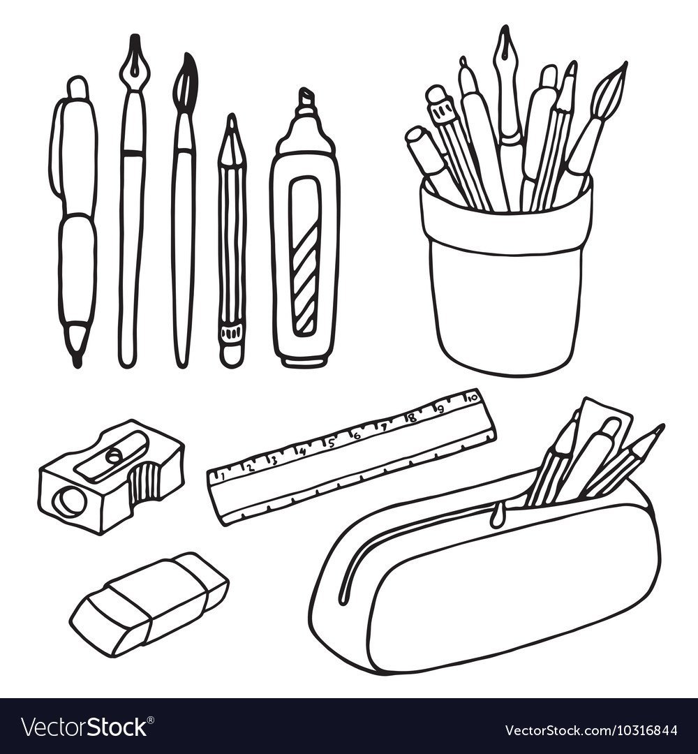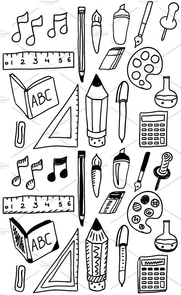 ![Зарисовки школьных принадлежностей]()