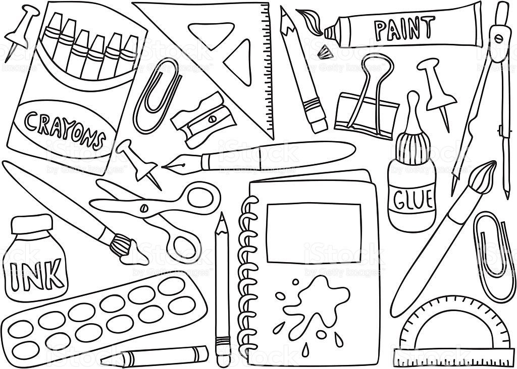 ![Раскраска канцелярия для школы]()