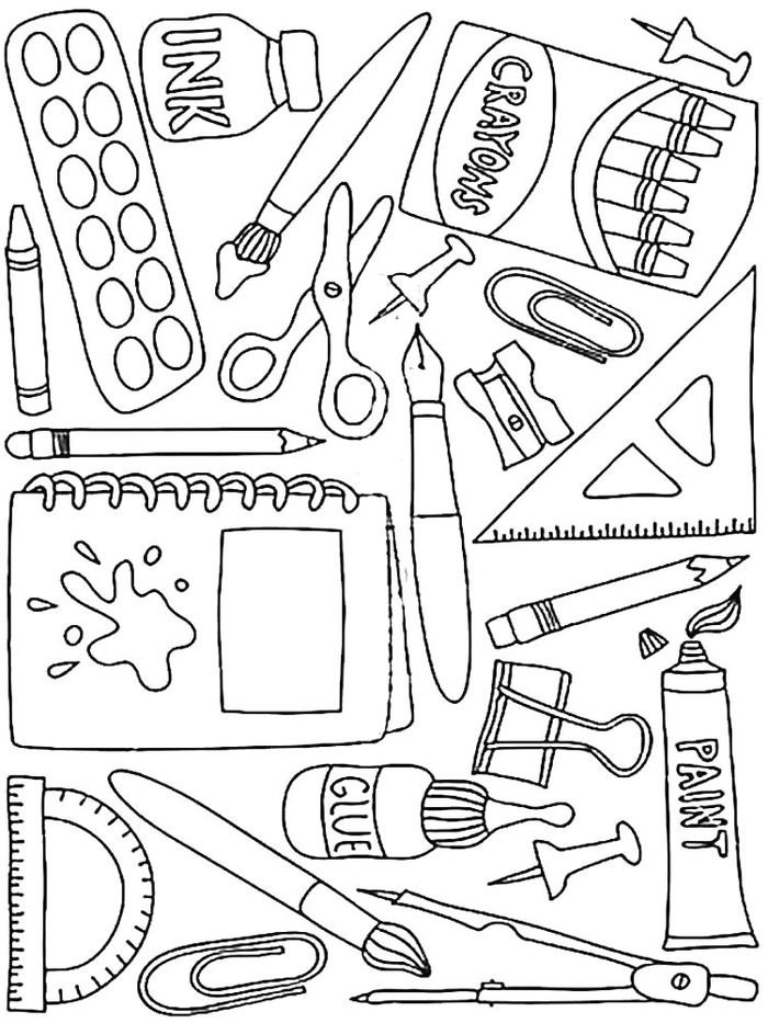 Раскраска канцелярия для школы