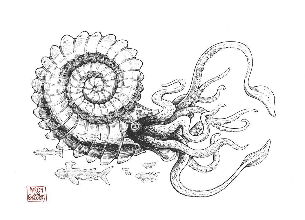 ![Наутилус Аммонит рисунок]()