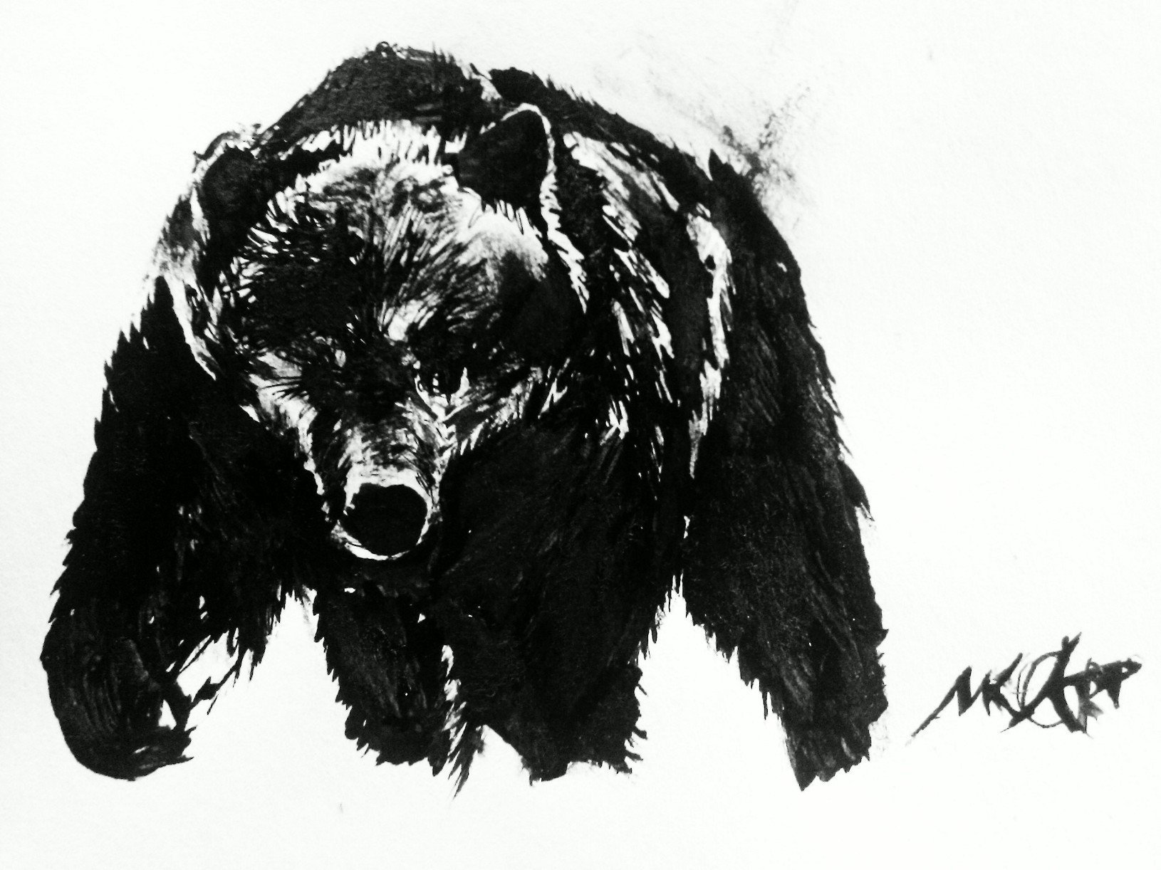 ![Медведь черно белый арт]()