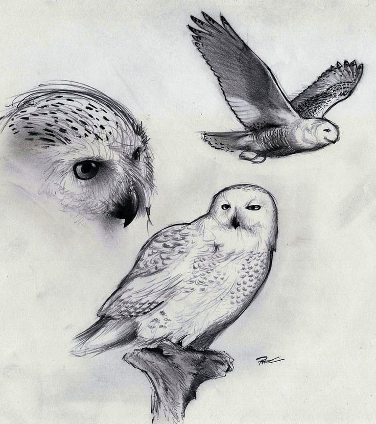 ![Сова сипуха эскиз]()