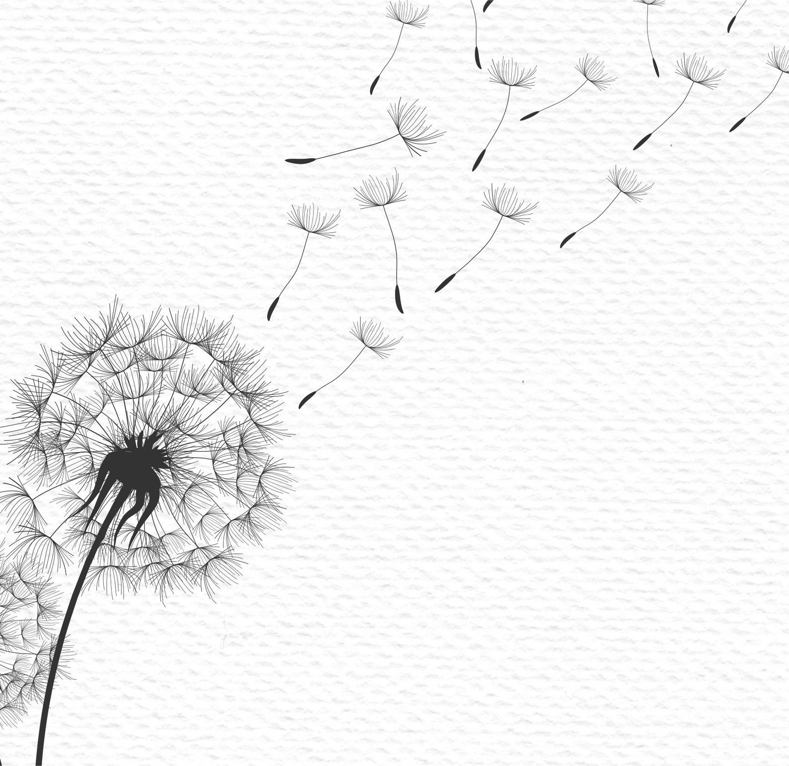 ![Черно белый одуванчик на белом фоне]()