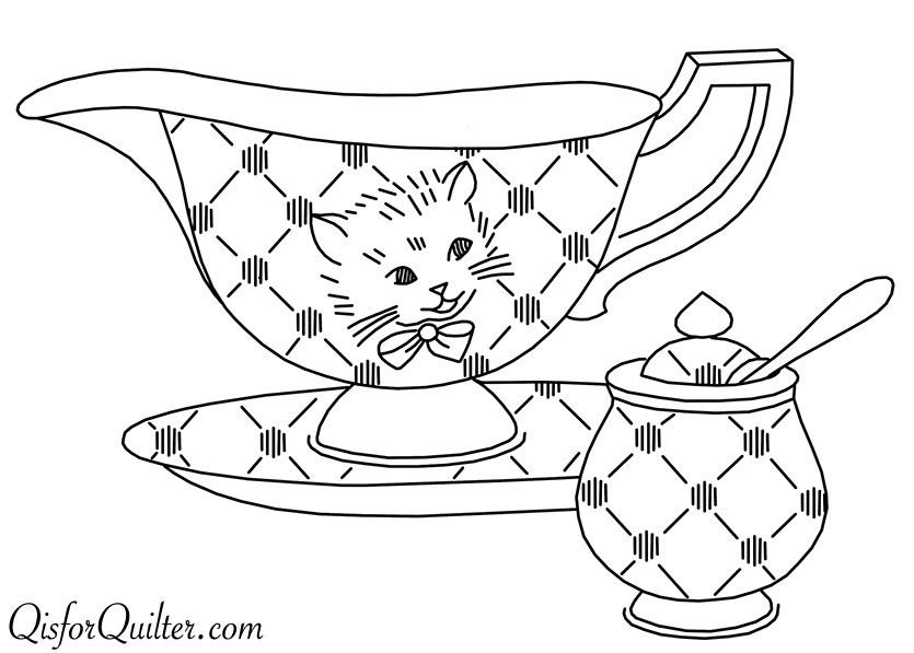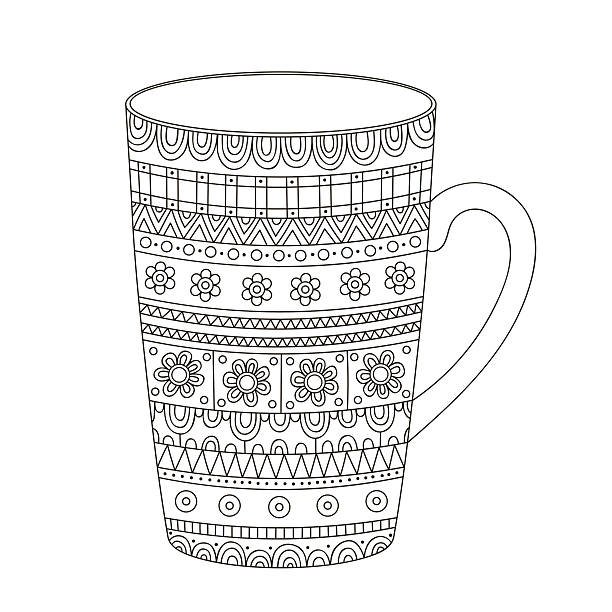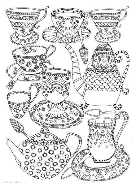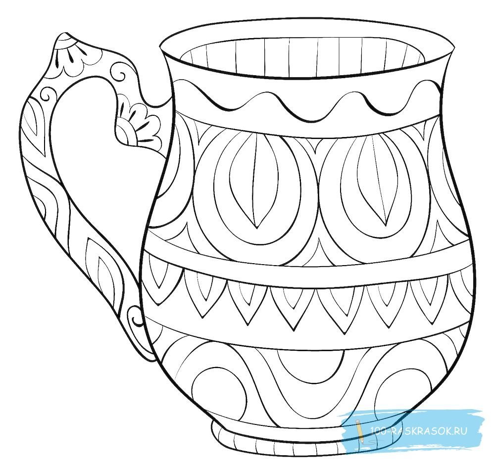 ![Посуда с геометрическим рисунком для раскрашивания]()