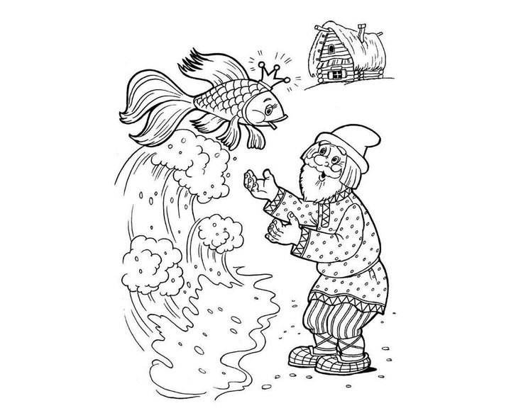 Раскраски к сказке Пушкина о рыбаке и рыбке