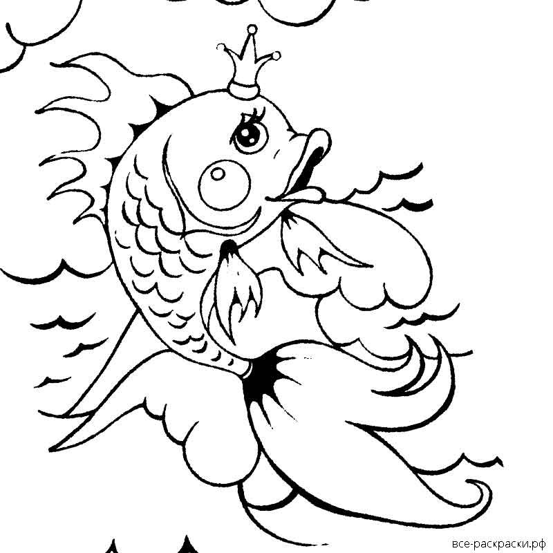 Золотая рыбка раскраска к сказке о рыбаке и рыбке