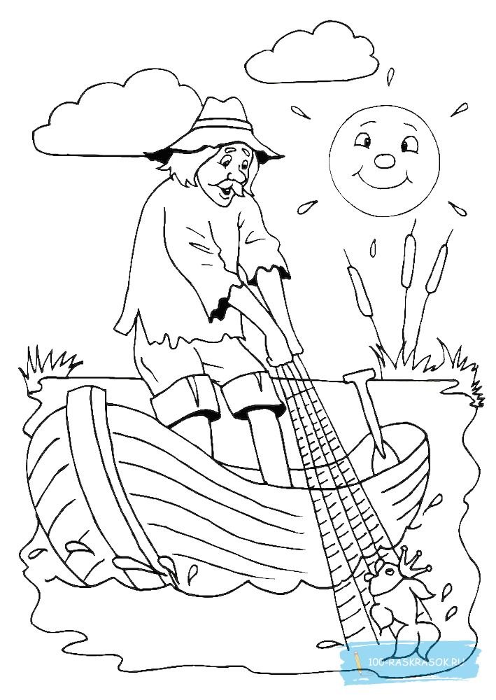 Рисунок о рыбаке и рыбке раскраска