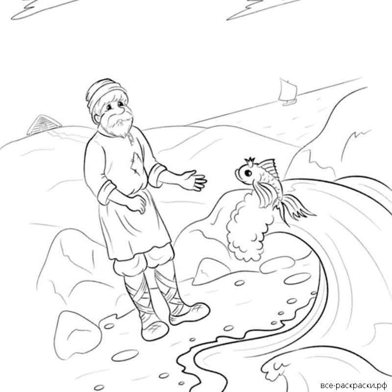 Раскраски по сказке Пушкина о рыбаке и рыбке