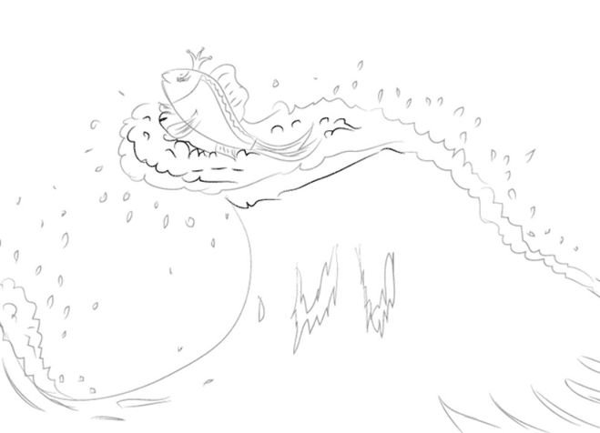 Эскиз к сказке о рыбаке и рыбке