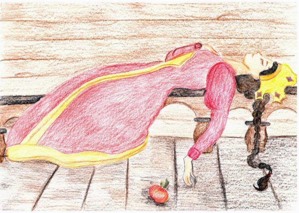 ![Рисунок о мёртвой царевне и семи богатырях]()