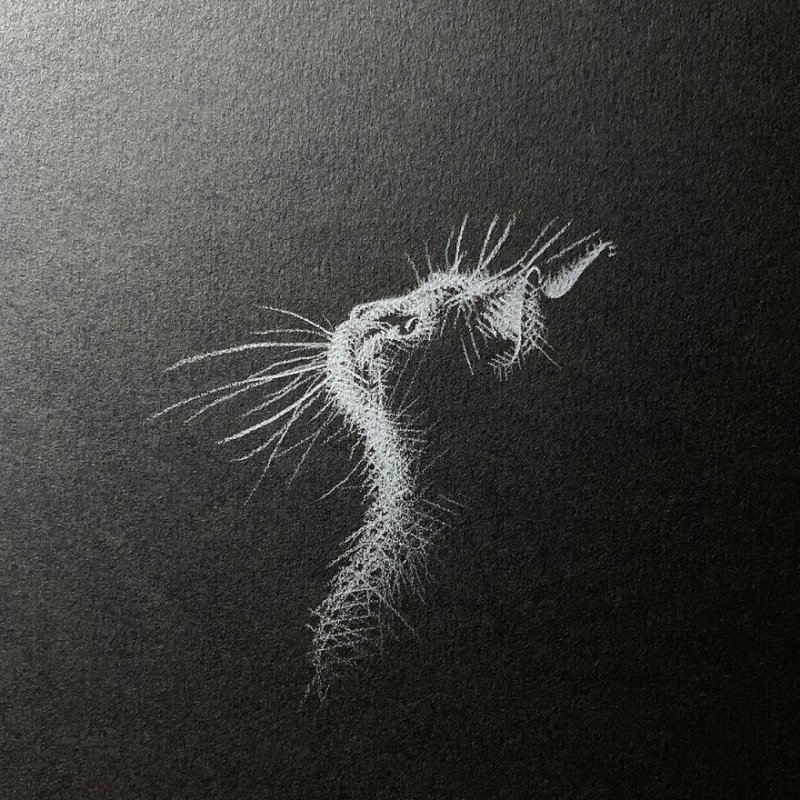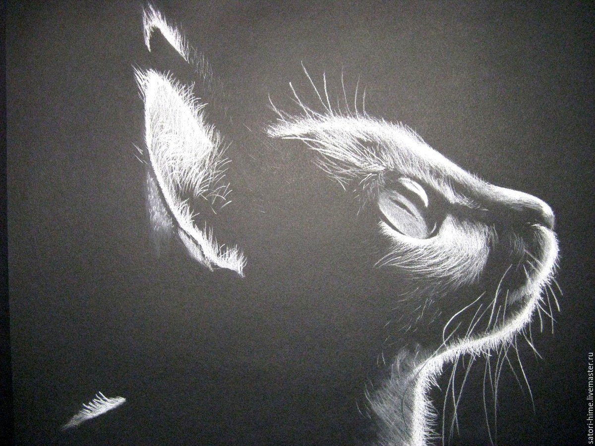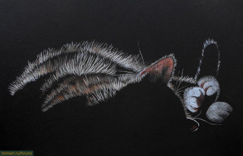 ![Кот пастелью на черной бумаге]()