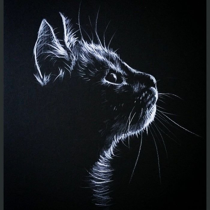 Кот пастелью на черной бумаге