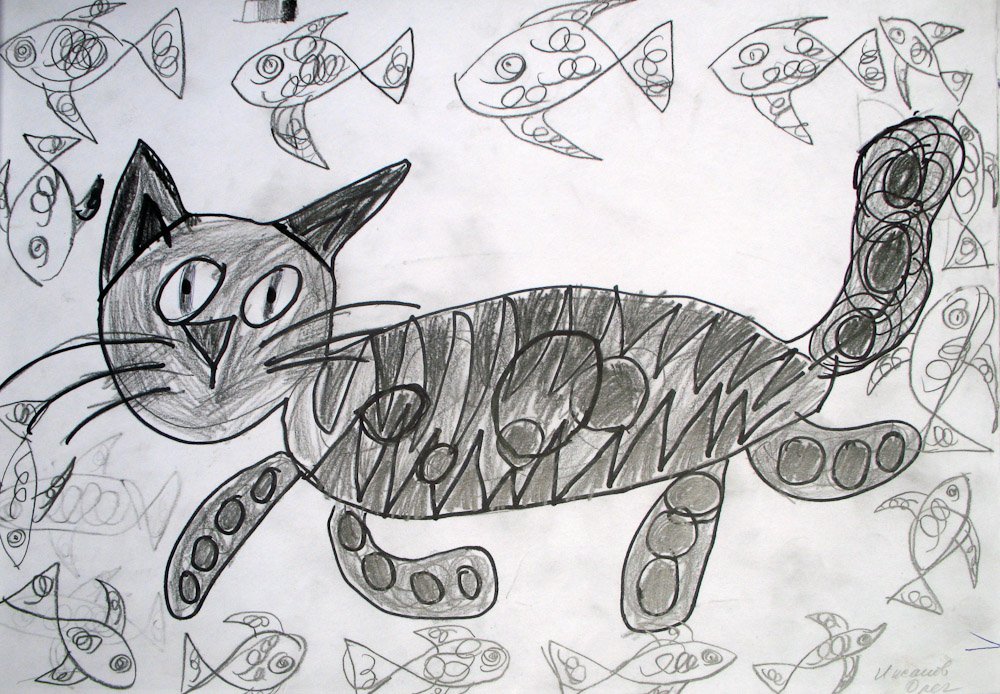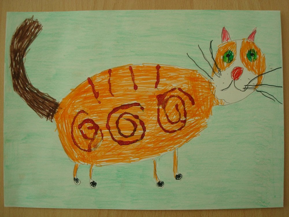 Детский рисунок кота - это веселая и яркая работа маленького художника. На белом листе бумаги оживает образ милого котенка, который с радостью прыгает и играет. Рисунок выполнен с помощью ярких красок, что придает ему особую жизнерадостность и энергию. Каждая черточка и деталь были тщательно продуманы, чтобы передать неповторимый характер и выразительность этого маленького пушистого создания. Детский рисунок кота не только поднимает настроение своим веселым видом, но и стимулирует творческое мышление и развивает моторику рук. Этот чудесный рисунок станет отличным украшением комнаты или подарком для близкого ребенка, который обязательно оценит его неповторимую красоту и уникальность.
