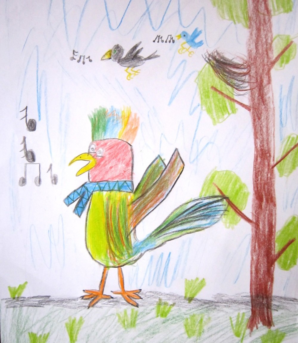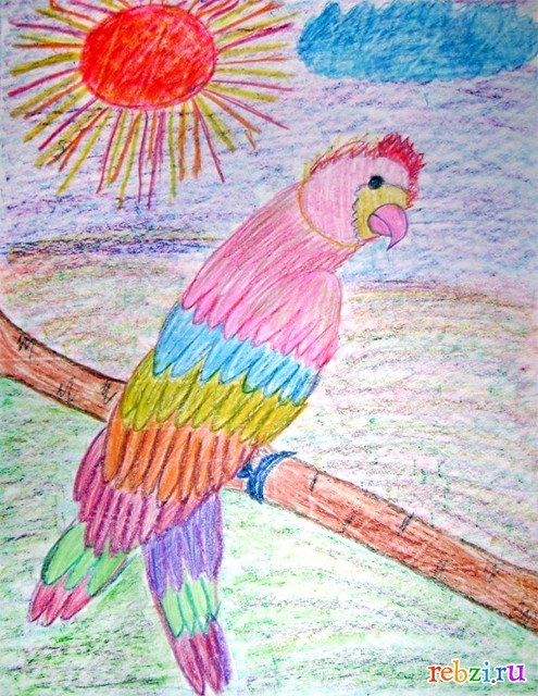 Детский рисунок попугай - это яркое и весёлое изображение, которое привлекает внимание малышей. Попугаи обычно изображаются с яркими пёрышками разных цветов, пушистым хвостом и клювом. Такие рисунки отлично развивают моторику рук у детей, помогают им узнавать новые цвета и формы, а также стимулируют их фантазию. Благодаря своей яркости и игривости, детские рисунки попугаев создают атмосферу радости и веселья, что делает их очень популярными среди детей и их родителей.
