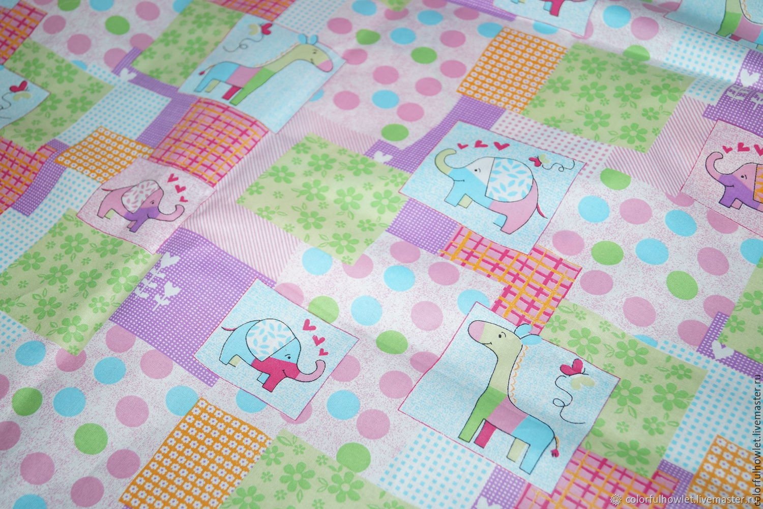 Ткань детская слоники