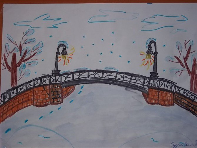 Детский рисунок моста - это яркое и веселое изображение, созданное маленькими художниками. На таком рисунке можно увидеть изящую архитектуру моста с красочными декоративными элементами, окруженную зелеными деревьями и цветами. Каждая деталь на рисунке отражает воображение и творческий потенциал ребенка. Детский рисунок моста позволяет развить моторику рук, внимание к деталям и цветовому сочетанию. Это красивая и оригинальная работа, которая может стать отличным подарком или украшением для комнаты.
