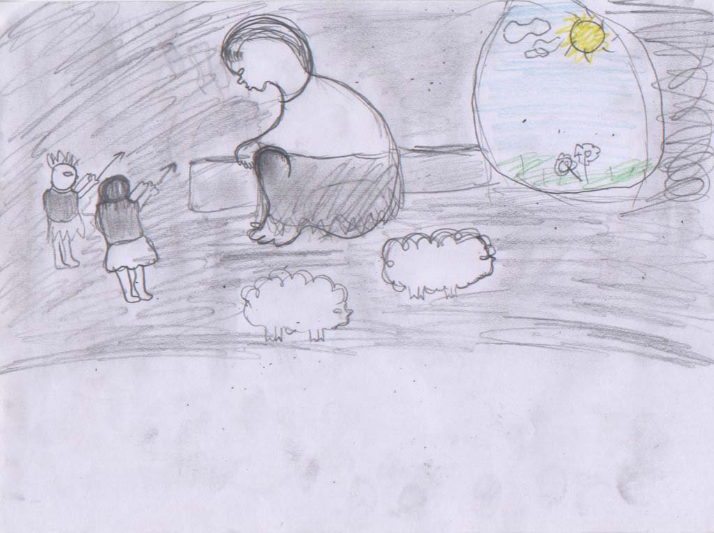 ![Циклоп Полифем и Одиссей рисунок]()