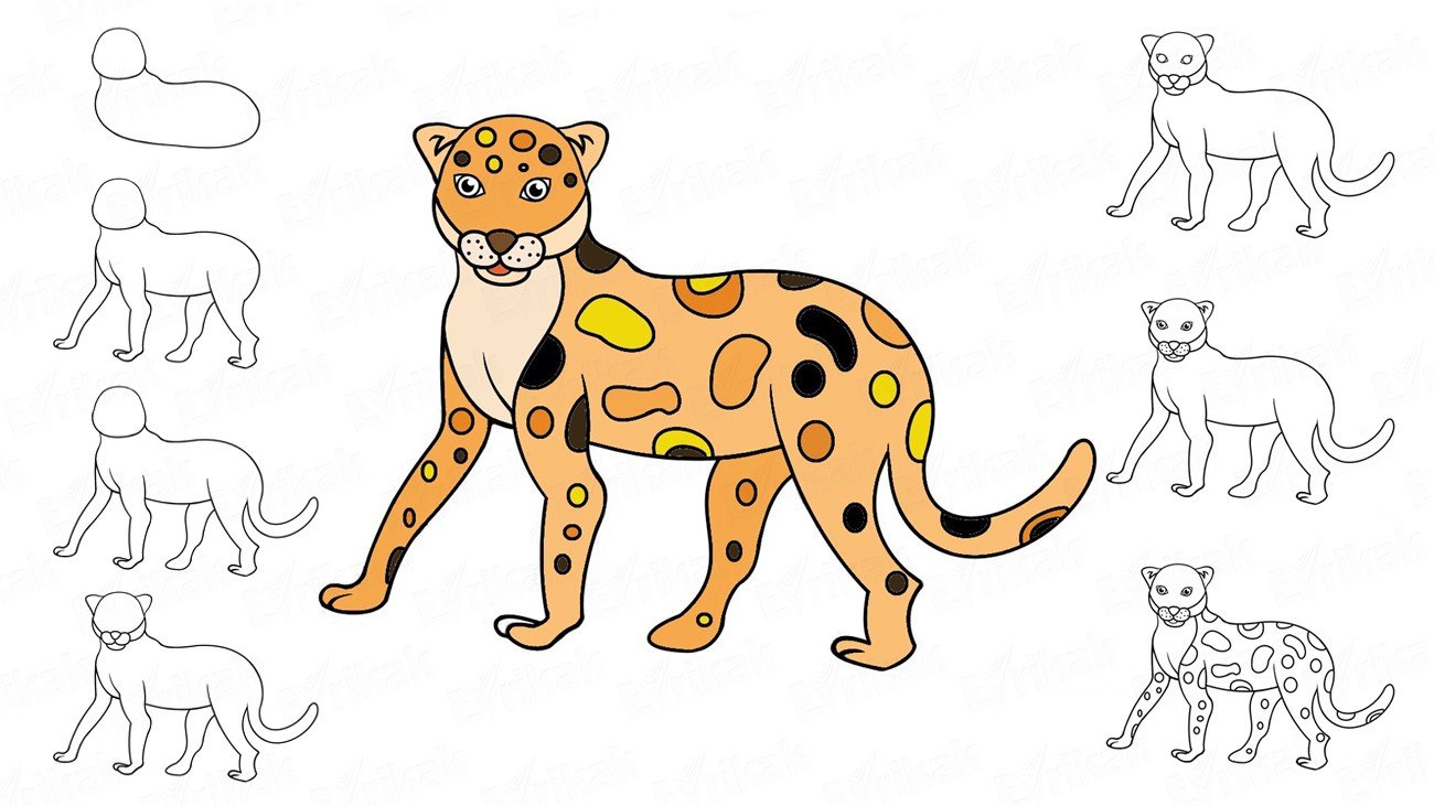 Детский рисунок с изображением леопарда - это яркая и увлекательная композиция, которая привлечет внимание маленьких художников. На таком рисунке можно увидеть элегантного и грациозного леопарда, окруженного зелеными джунглями или на фоне живописного заката. Он сделан в ярких цветах, используя различные техники рисования, что добавляет ему живости и выразительности. Дети с радостью разукрасят этот рисунок, проявляя свою фантазию и креативность. Такой детский рисунок с леопардом станет отличным способом не только для развития творческих навыков, но и для изучения животного мира и цветовых сочетаний.