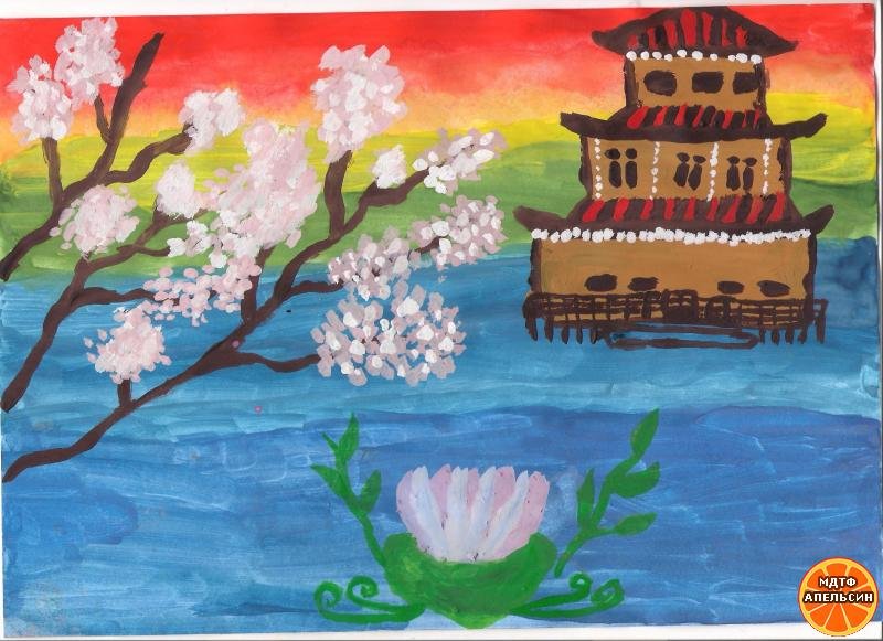 Японский пейзаж рисунки детей