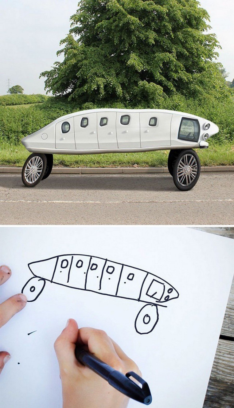 ![Автомобиль с детского рисунка в реальности]()
