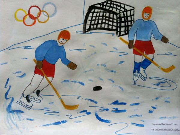 ![Детский рисунок на тему хоккей]()