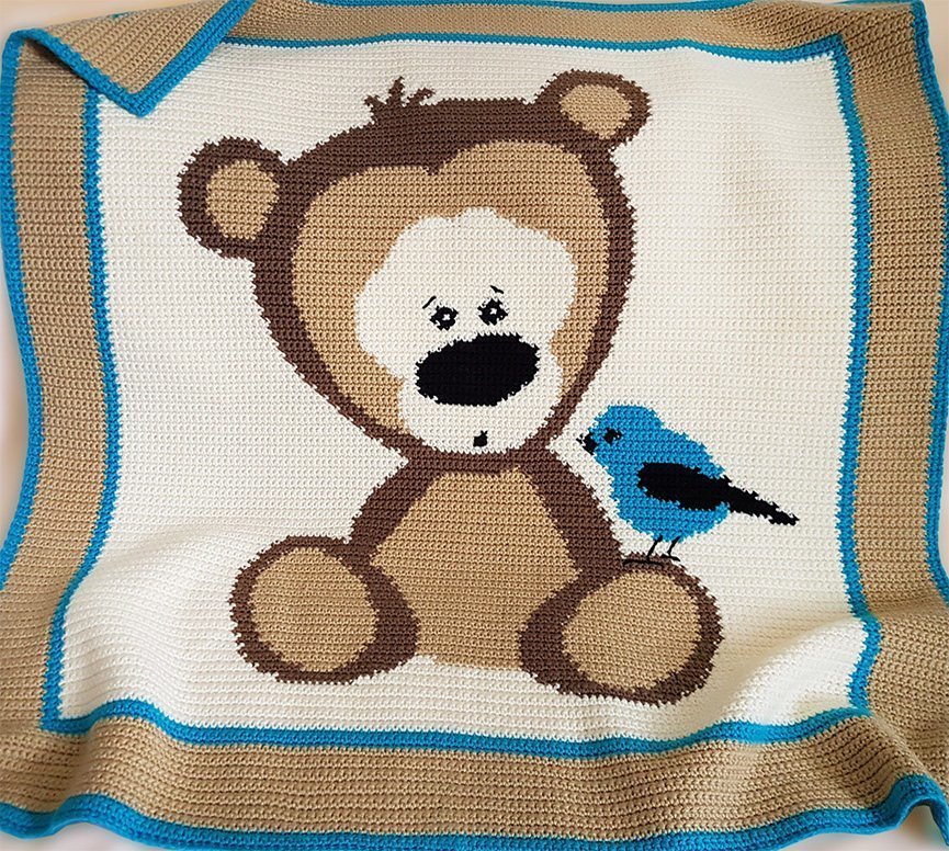 ![Вязаный детский плед с мишкой]()