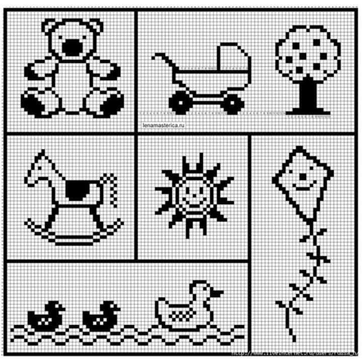 ![Схемы вывязанных рисунков для детей]()