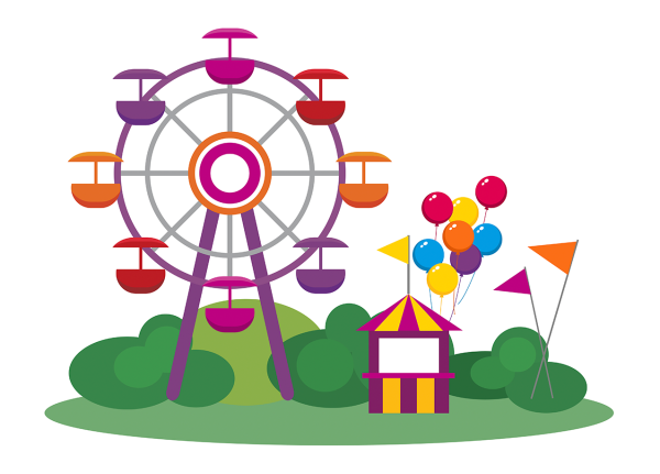![Парк аттракционов мультяшный]()