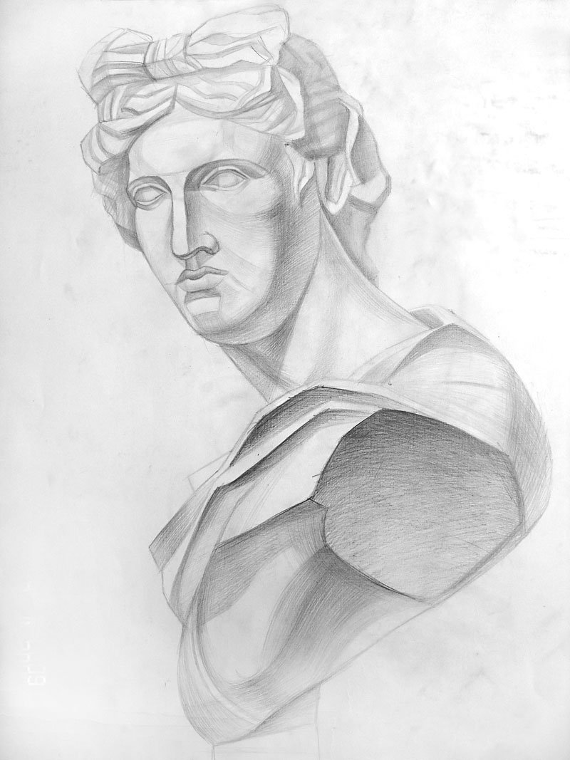 Аполлон Бельведерский бюст рисунок