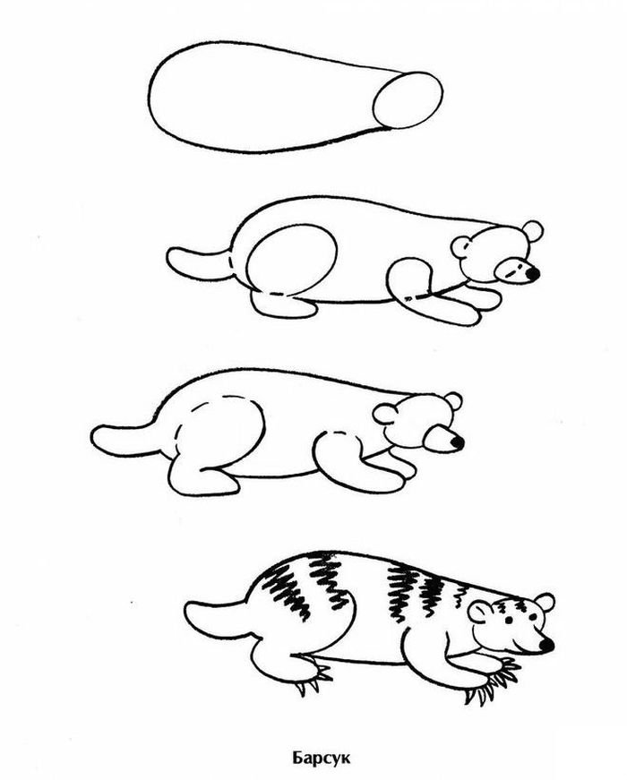 Пошаговый рисунок барсука