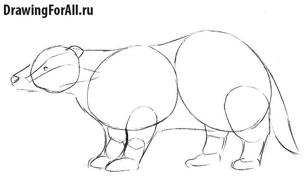 Барсук поэтапное рисование