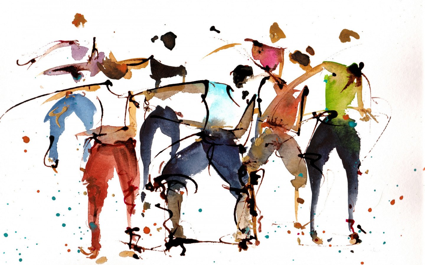 Толпа людей акварелью