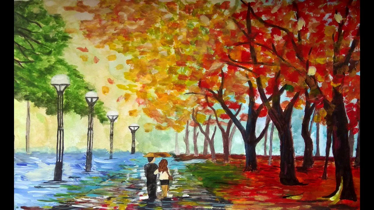 Рисование осенний парк