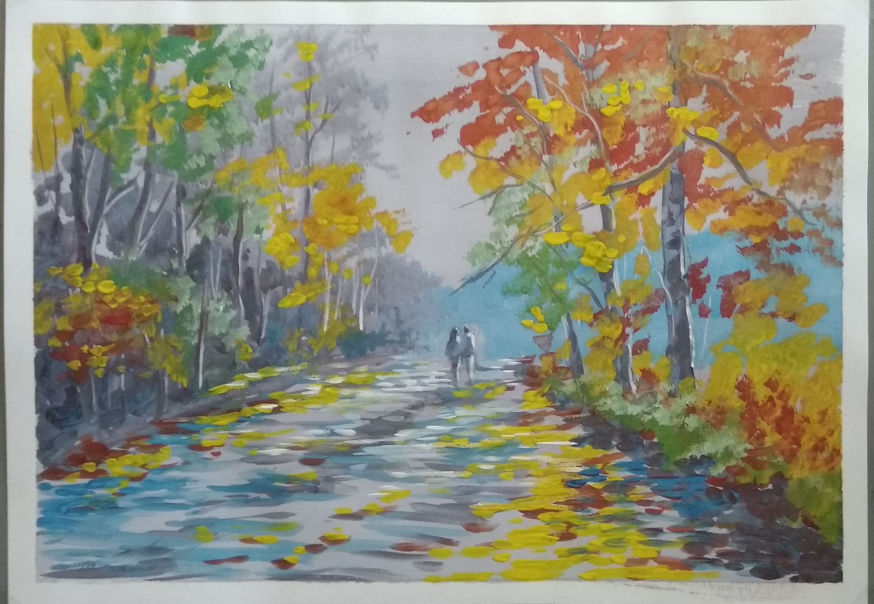 Осенний парк гуашью