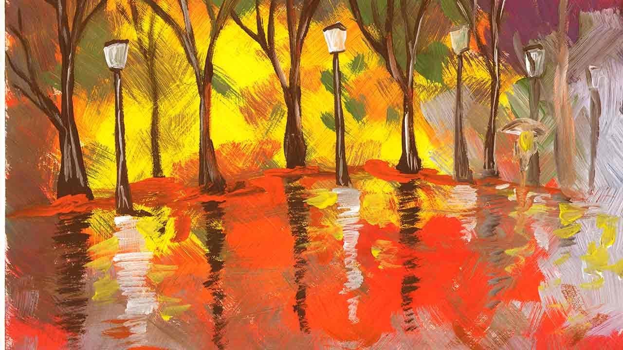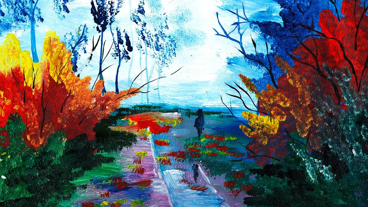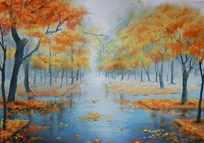 Осенний пейзаж акриловыми красками