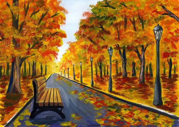 Осенняя аллея пейзаж гуашью