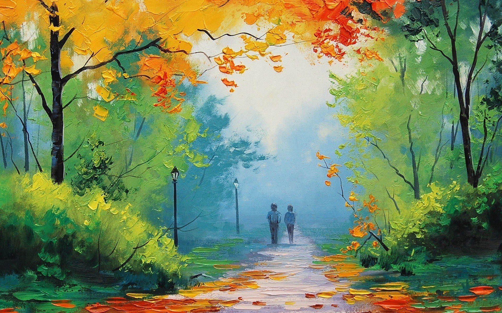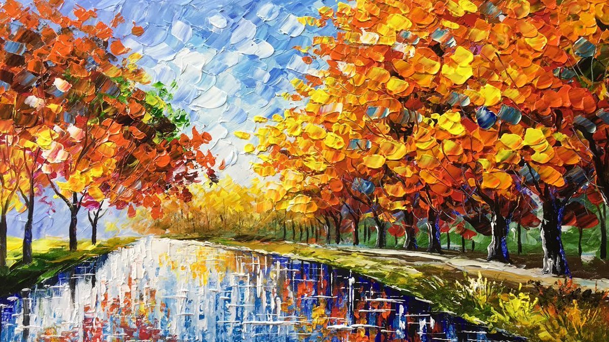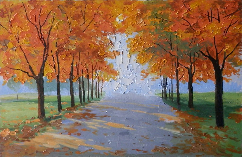 Леонид Афремов картины осень аллея