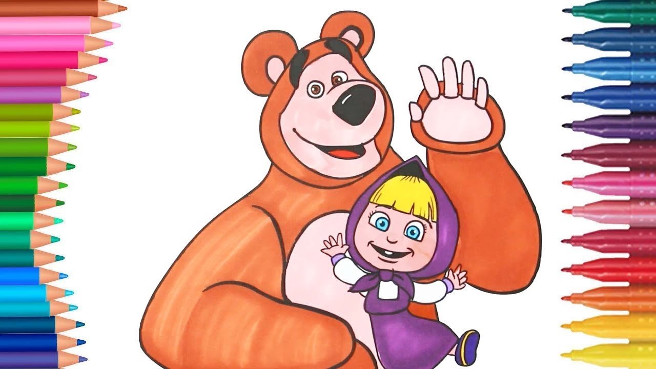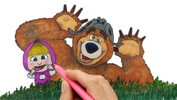 Маша и медведь рисунок цветной