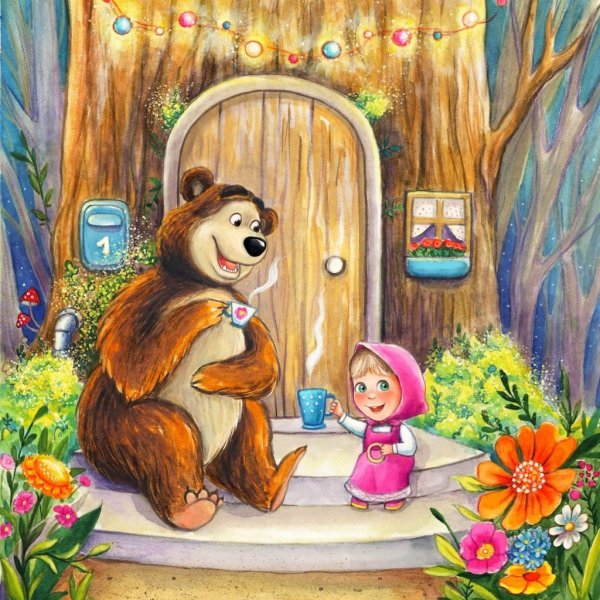 Маша и медведь рисунок акварелью
