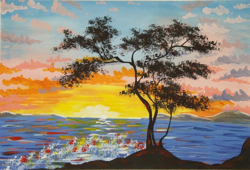 Закат гуашью