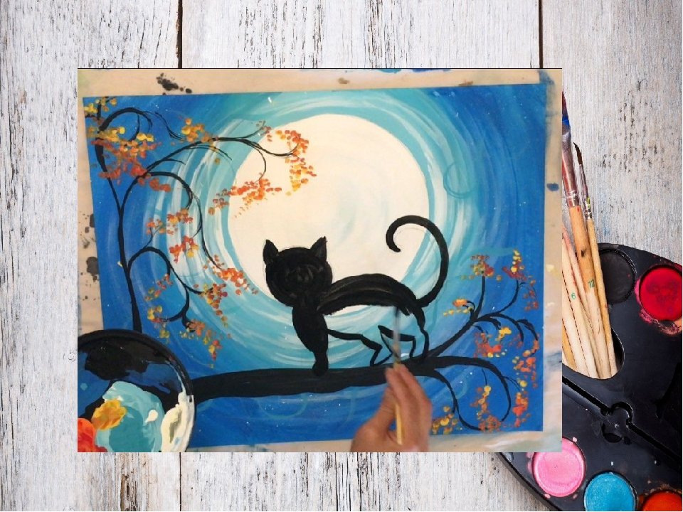 ![Рисование кота гуашью для детей]()