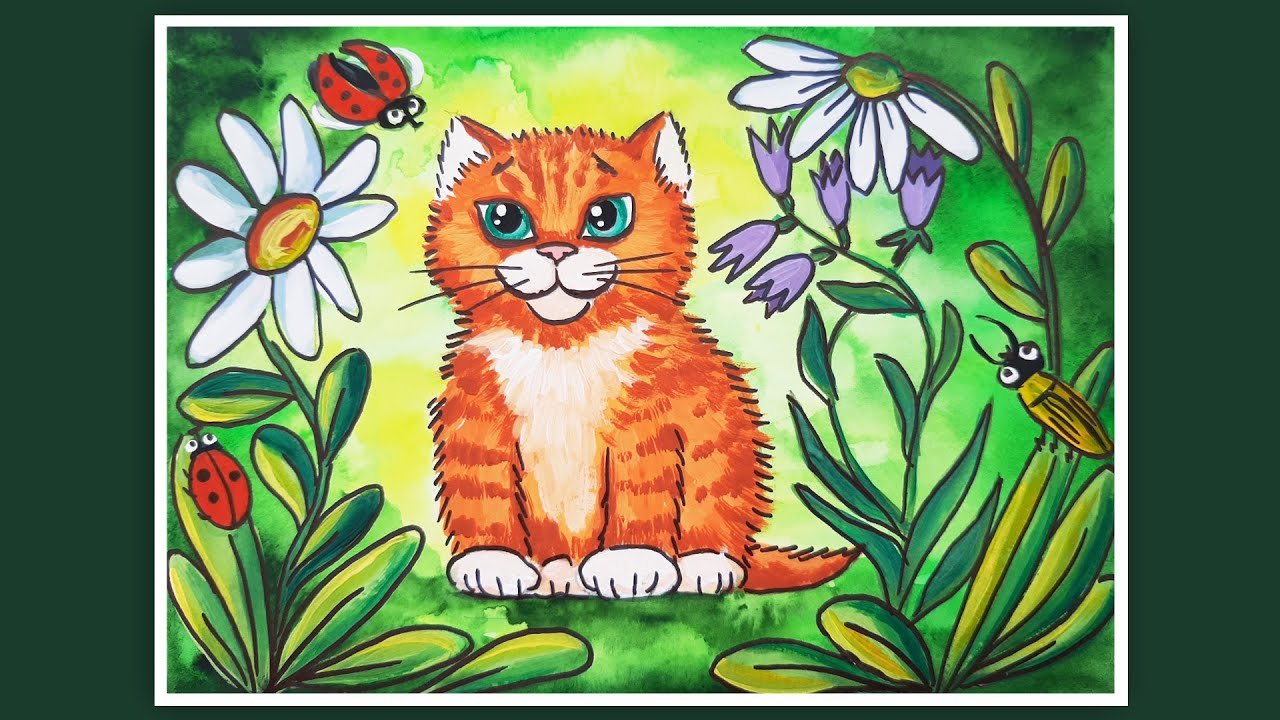 Рисование кота гуашью для детей