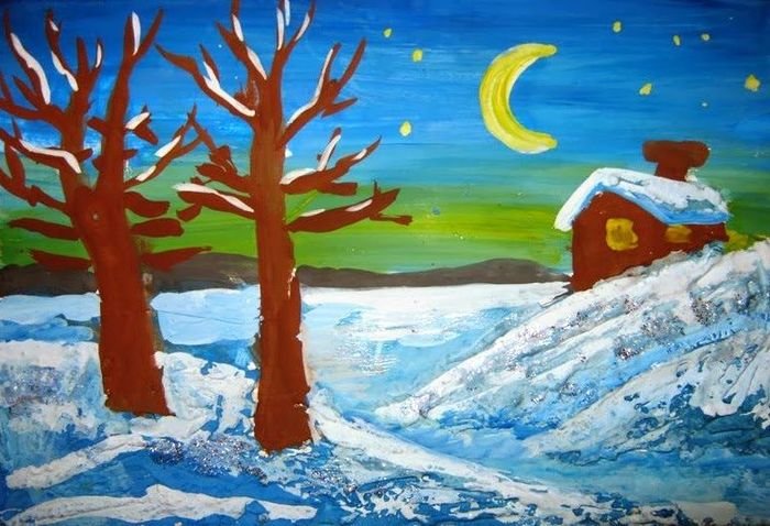 ![Рисование зимы красками]()