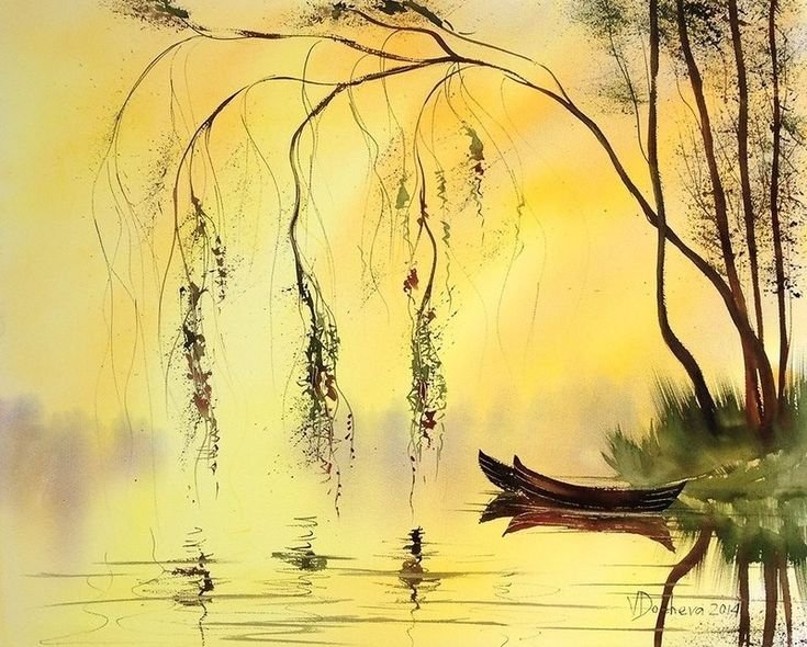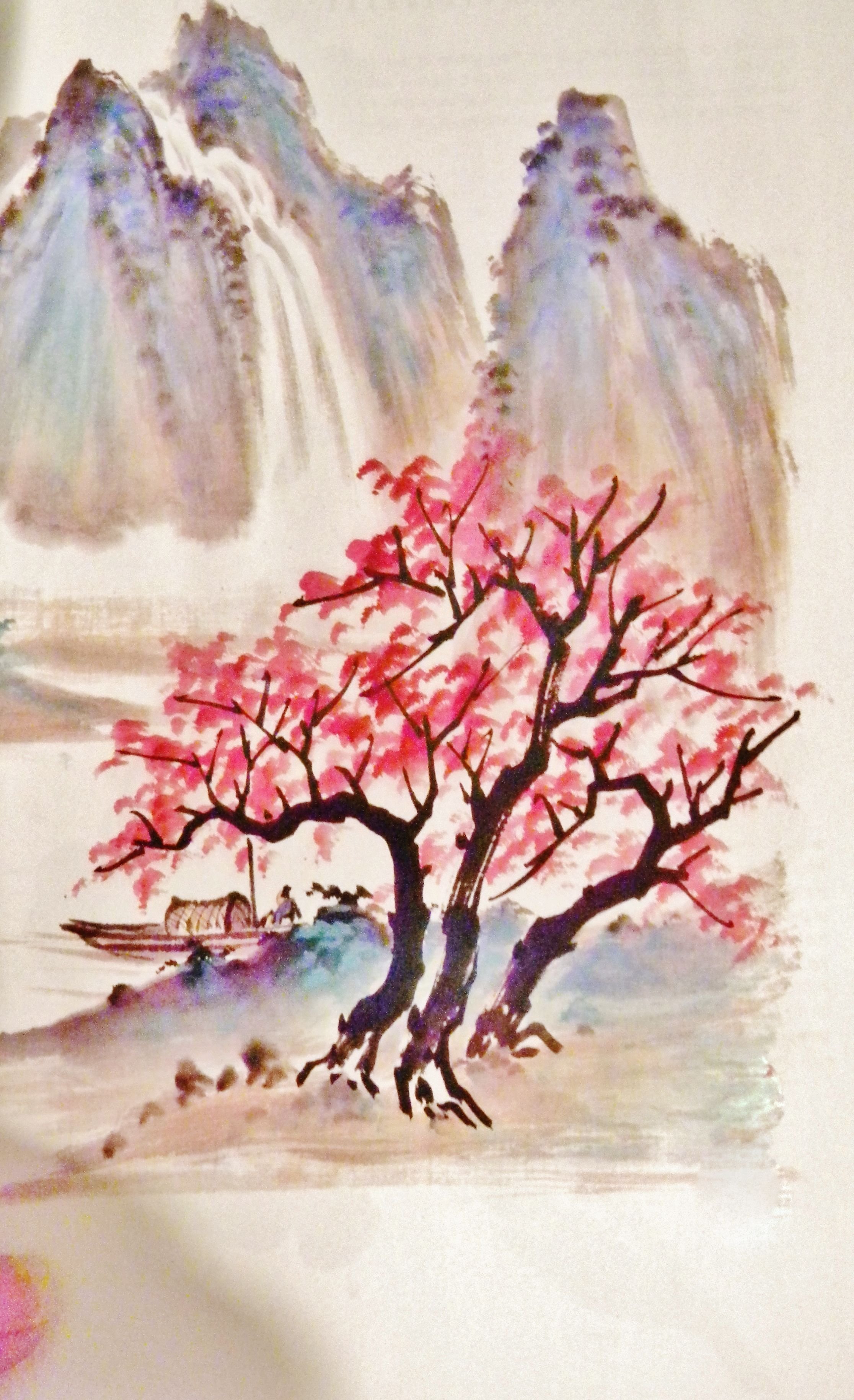 ![Японский пейзаж красками]()