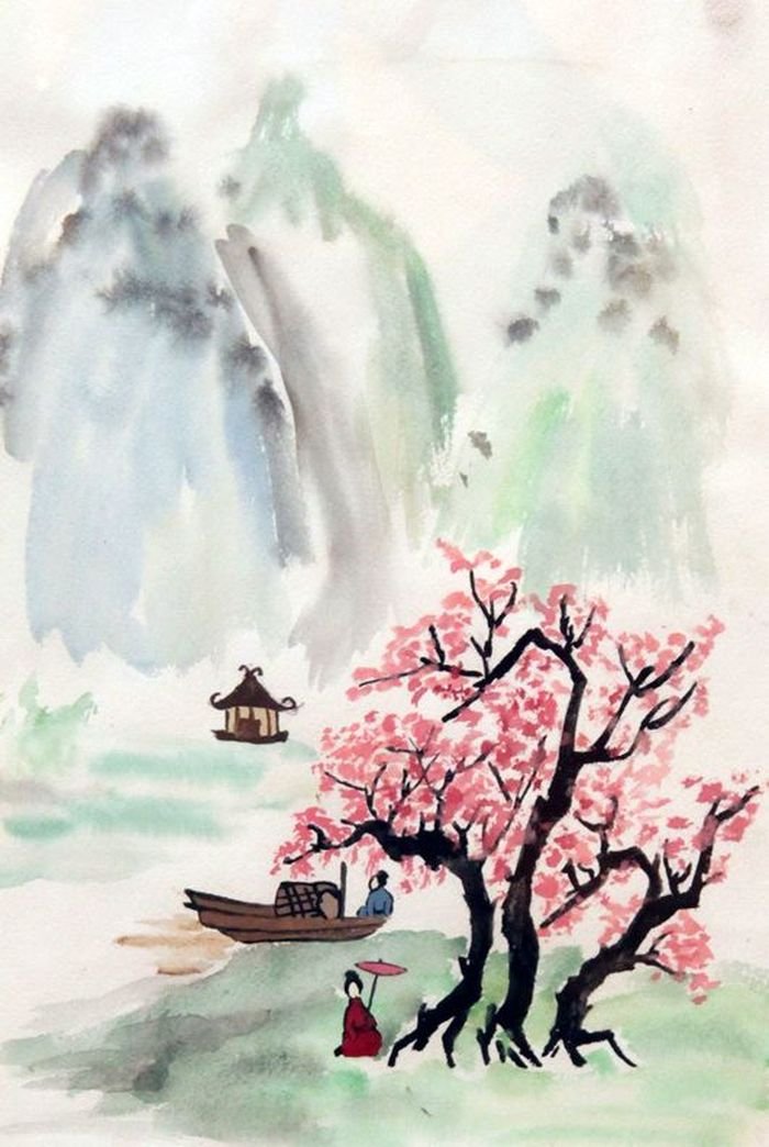 ![Японская живопись акварелью]()