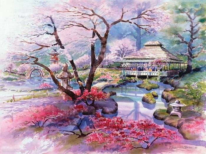 ![Японские Акварельные пейзажи]()