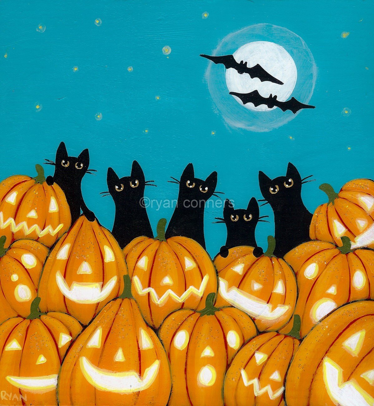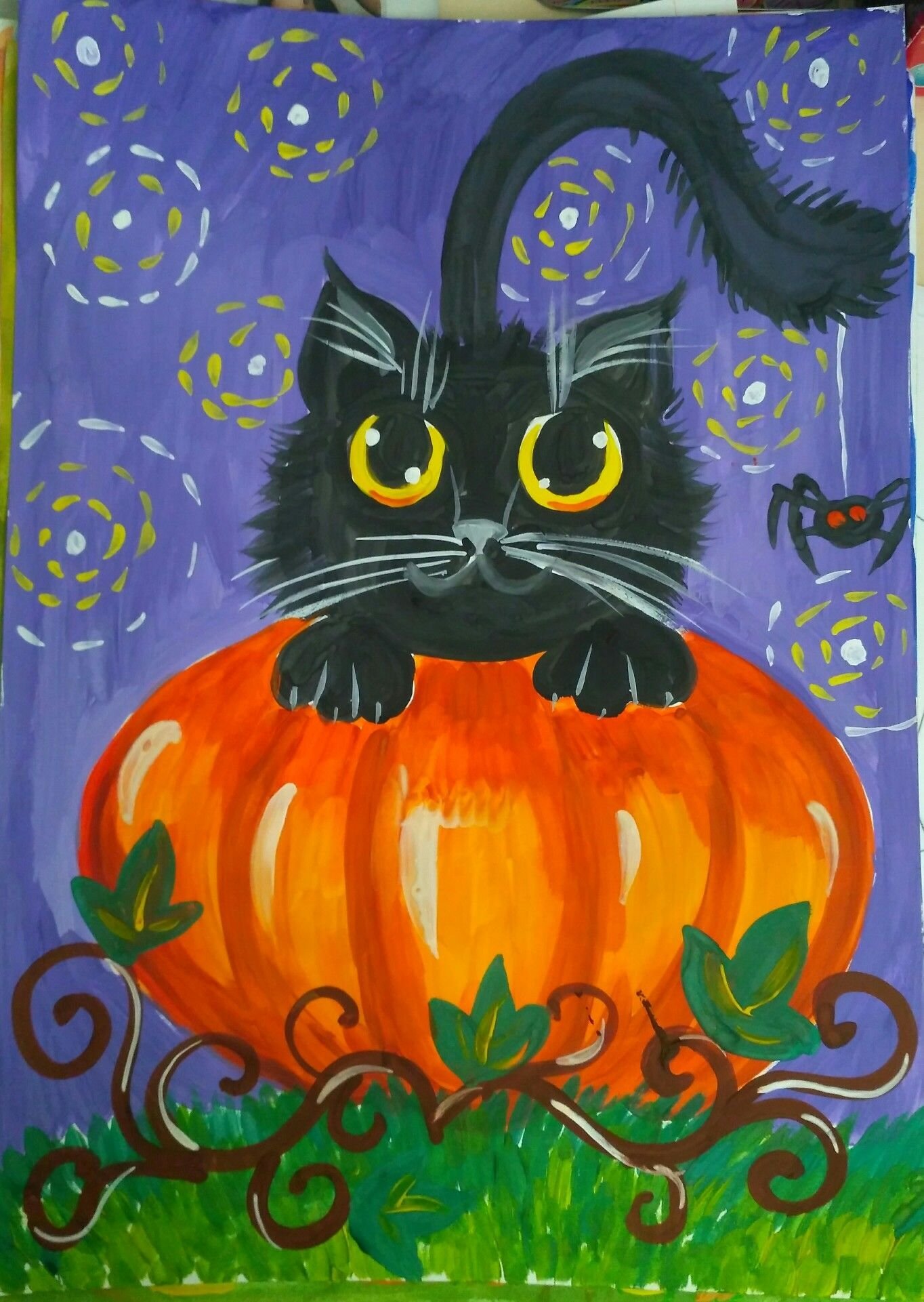 ![Хэллоуинский кот гуашью]()