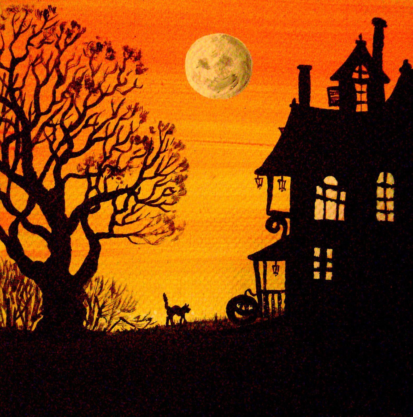 Хэллоуинские пейзажи гуашью