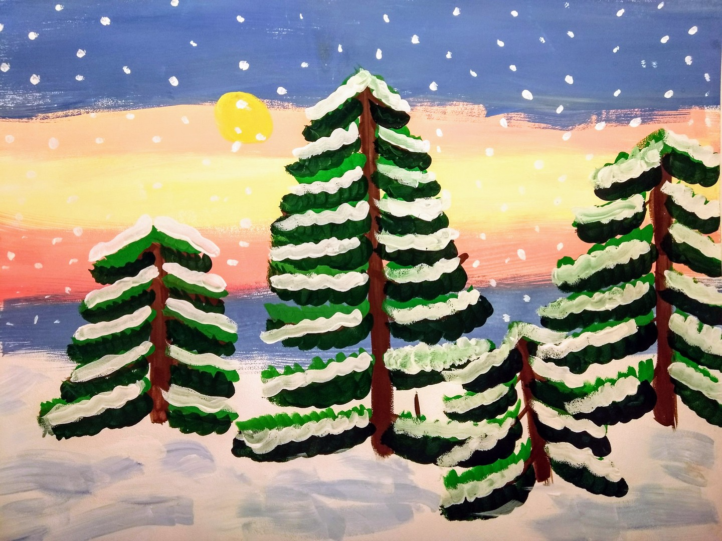 ![Елка в снегу гуашью]()