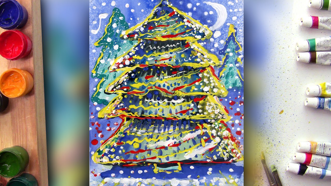 ![Зимняя елка красками]()